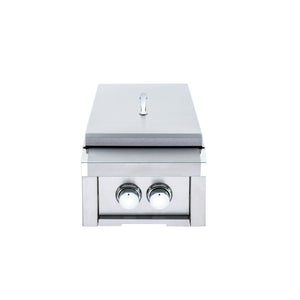 Add an extra heat element to your outdoor grill station with this 24,000 BTU double side burner from Heat. This model provides a separate cooking area for preparing items in pots and pans while you grill. Its professional-grade, 304 stainless steel construction makes it highly durable outdoors and easy to clean. The two knobs on the front control the first and second burner independently. Make your outdoor kitchen as versatile and self-sufficient as your indoor version with Heat grills and accessories.